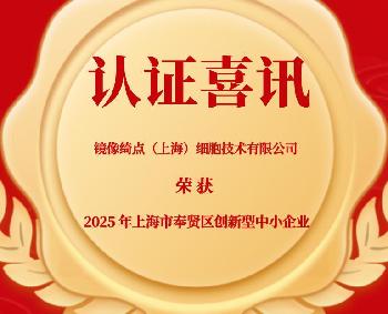 镜像绮点(上海)细胞技术有限公司已通过 2025 年上海市奉贤区创新型中小企业认定.