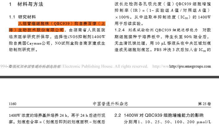 科学研究讲究的是严谨,实验研究重要的一步就是选材问题,细胞选不好或者质量不好不真实,意味着所有的研究实验结果全部推到重来,浪费的不仅仅是经历还有实验时间,时间是用金钱买不回来的,所以购买细胞一定要用质量好,有鉴定的真实细胞,赛百慷一直以来都是以诚信服务,提供完善的售后服务,提供的细胞真实可靠价格公道,以下是部分客户在使用赛百慷细胞后发表的论文课题,仅供参考